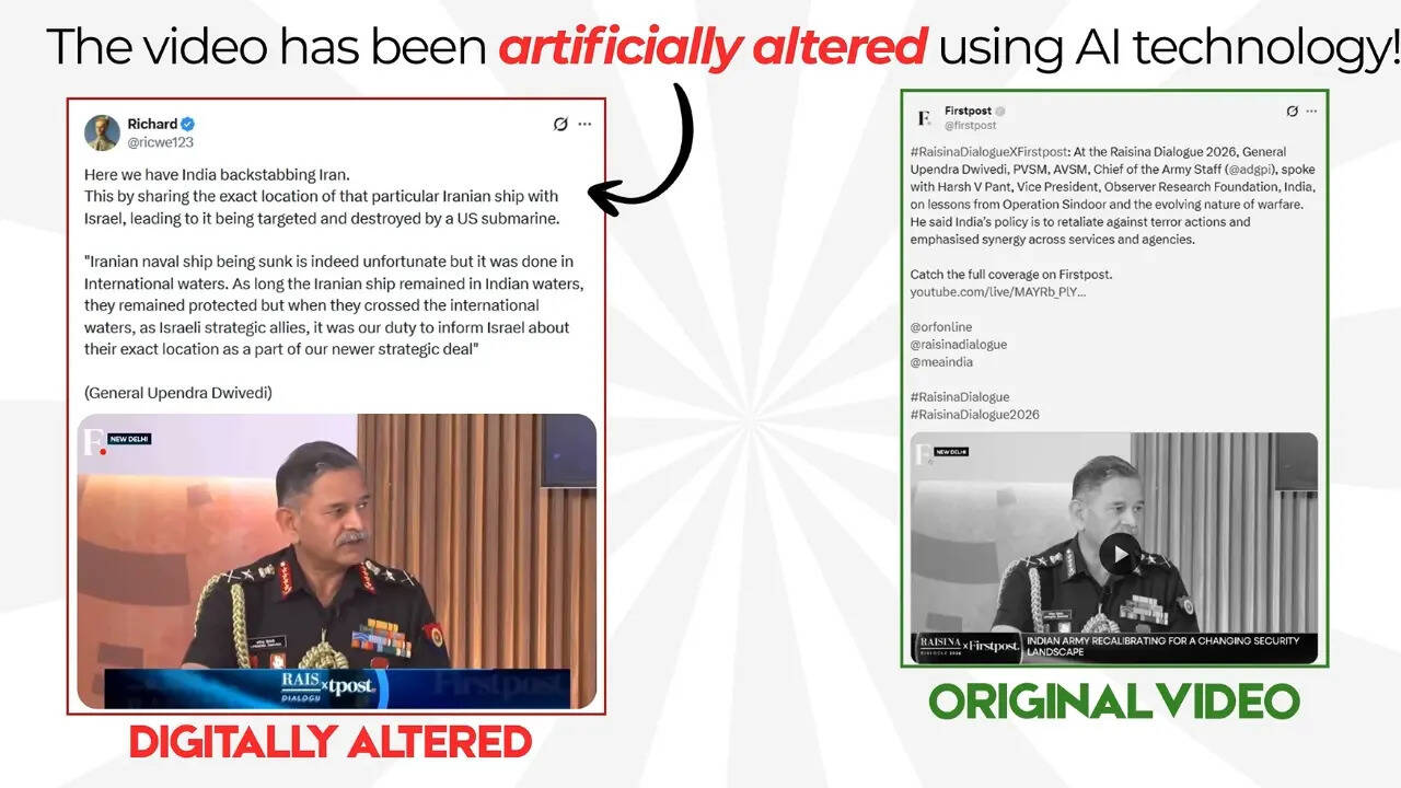 A video circulating on social media claims that Indian Army Chief General Upendra Dwivedi said that when an …